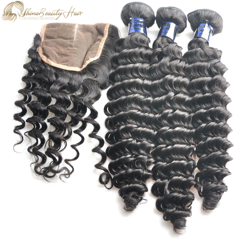 Shine Beauty Hair Wholesale 3pcs Deep Wave Hair Bundles With Closure 4x4 1pc Brazilian Hair Free Shipping